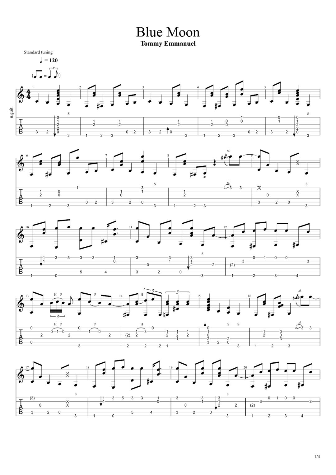 今天给各位推荐的作品是来自Tommy Emmanuel改编演奏的《Blue Moon》,整首作品可以算是美式指弹的经典代表作了。独立的Bass,独立的旋律,独立的和声,独立的节奏,然后这些全都融化在了一起,Tommy将美式指弹推向了这个时代的高潮,作为曾经2000年悉尼奥运会开幕式的吉他演奏者,他的实力是毋庸置疑的。这首作品一定是美式指弹爱好者的必练曲目,如果你喜欢美式指弹,那你一定要试一试。