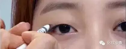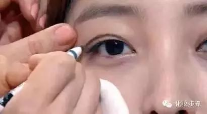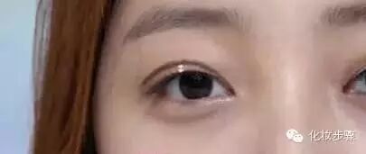 6、晕染成比较自然的浅棕色后,会发现上眼睑与棕色线条间还有一个空隙,闭起眼睛大约是0.3cm左右。