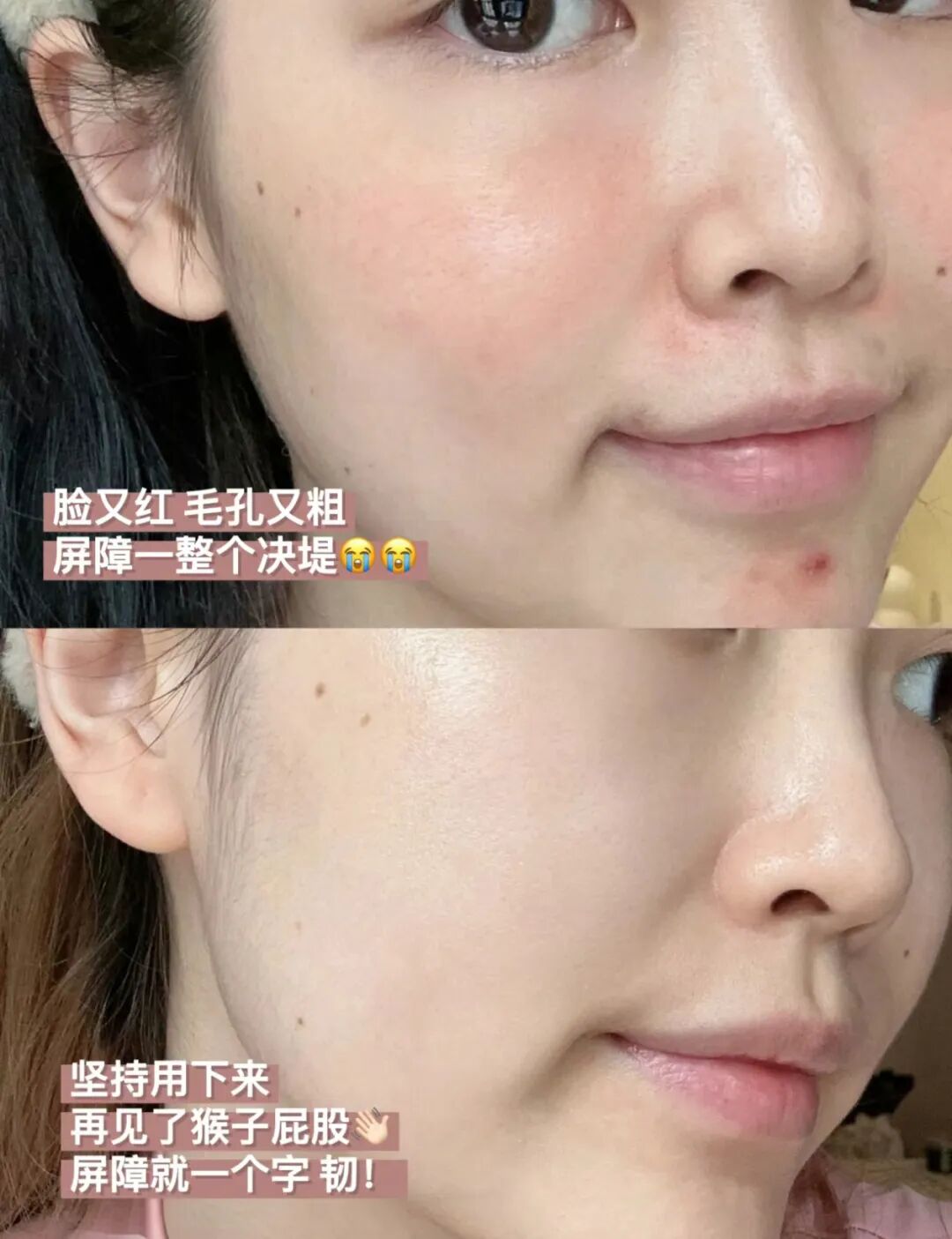 坚持使用 1 个月的话,还能减少皮肤的水分流失,这在换季的时候真的特别重要(是让皮肤不起皮,不粗糙的关键)。