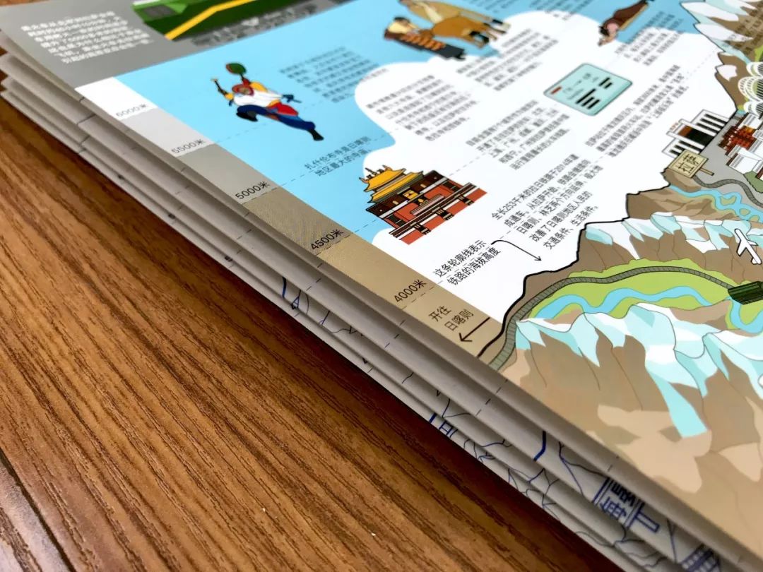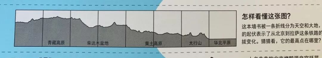 墙报两册是海拔高度尺,每个地形的高度都是参考真实数据绘制的,孩子看着这幅图,就能对三大阶梯地形一目了然。