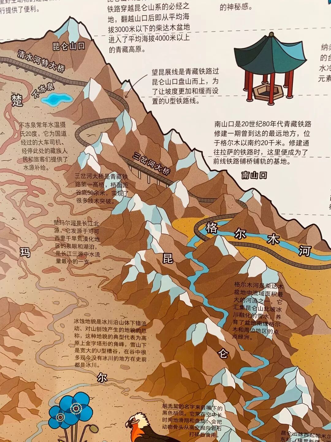 不仅能带孩子看美景,还能学到了超多知识。比如中国地形的三大阶梯、6大山脉、6大河流水系、珍稀动植物等……将来地理课、生物课必考的内容,竟然能这样边玩边学。