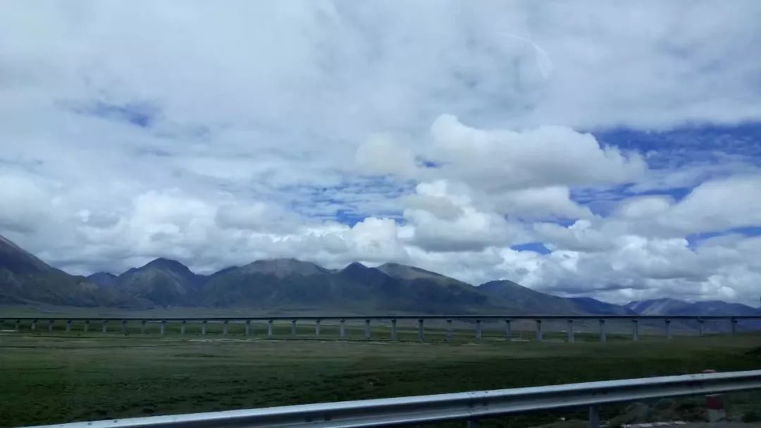 以那曲车站前的大桥为例,这是书中窗外风景: