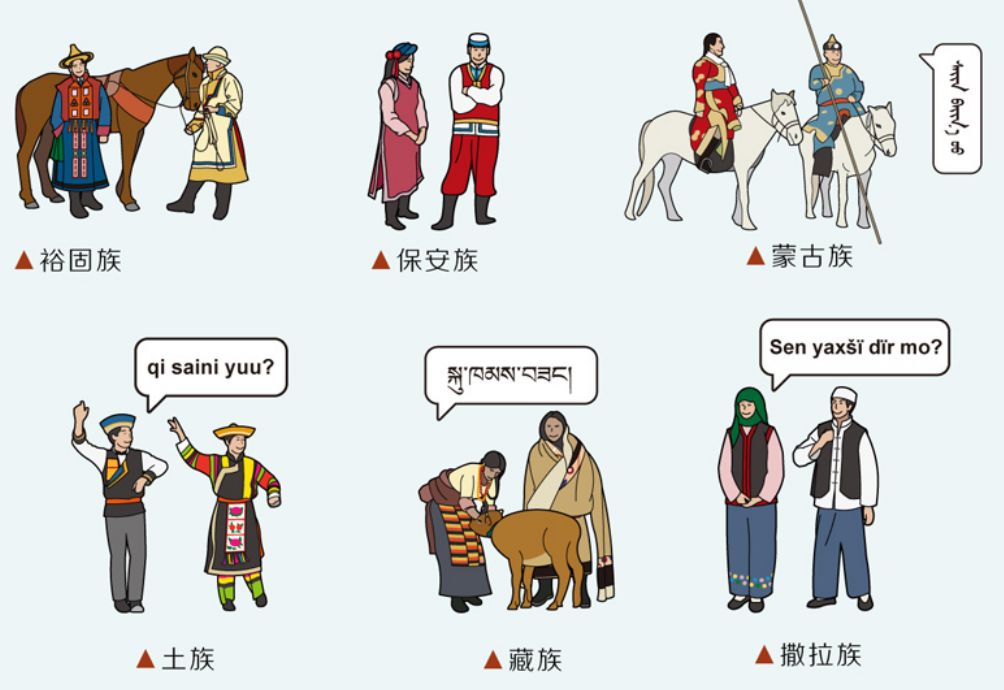 另外,海报上还展示了沿途的9个少数民族,以及他们丰富的语言、历史、服装、饮食、风俗等。