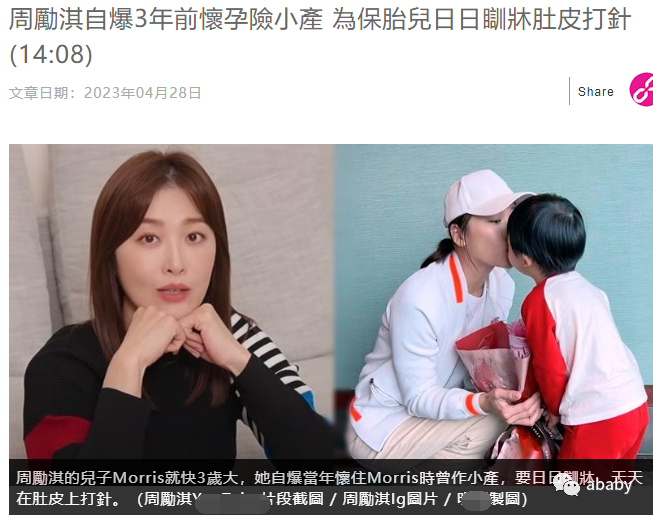 周丽淇表示,2019年那会儿并不知道自己怀孕,当时正在拍剧,月事也照常来,两个月后去医院检查才得知怀孕,她很害怕也很疑惑,为什么还有“月事”?后来才明白是有点小产症状(学名作小产),所以会出一点血,医生给她注射的安胎针,叫她不要动太多,躺在床上休息,指胎儿尚未正式进入稳定期。