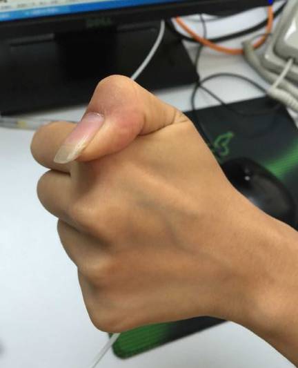 伙伴们,反摸肚脐眼、锁骨放硬币都弱爆了,现在流行的是反扣大拇指比帅!刚子套用网上的一句流行语:你们城里人真会玩!