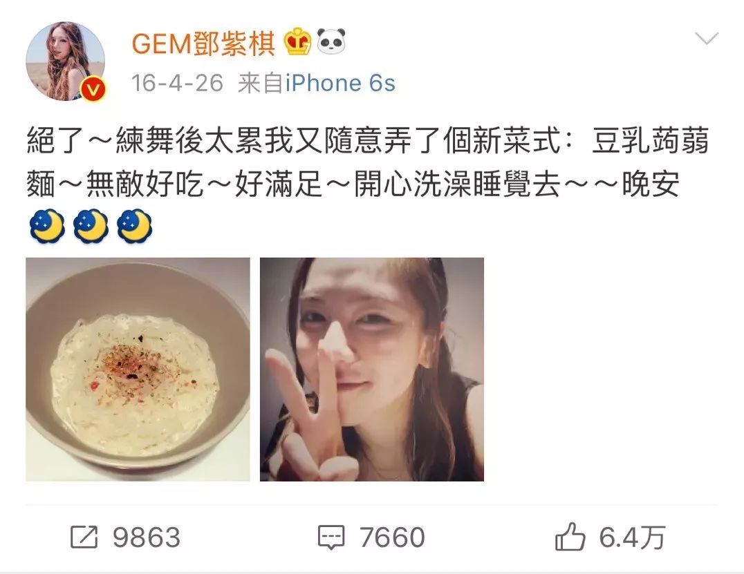 连身材一向保持得很好的铁肺公主邓紫棋,也在微博自曝餐餐离不开它。