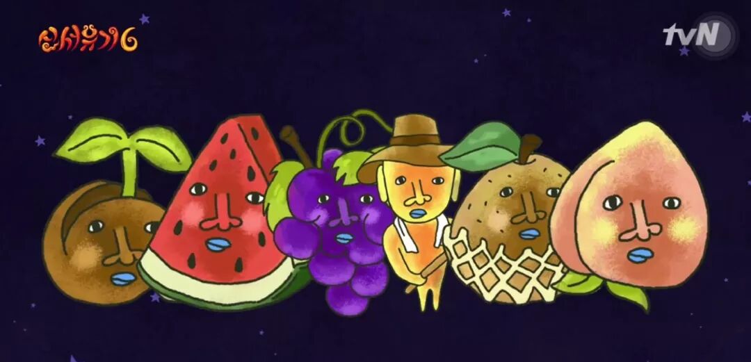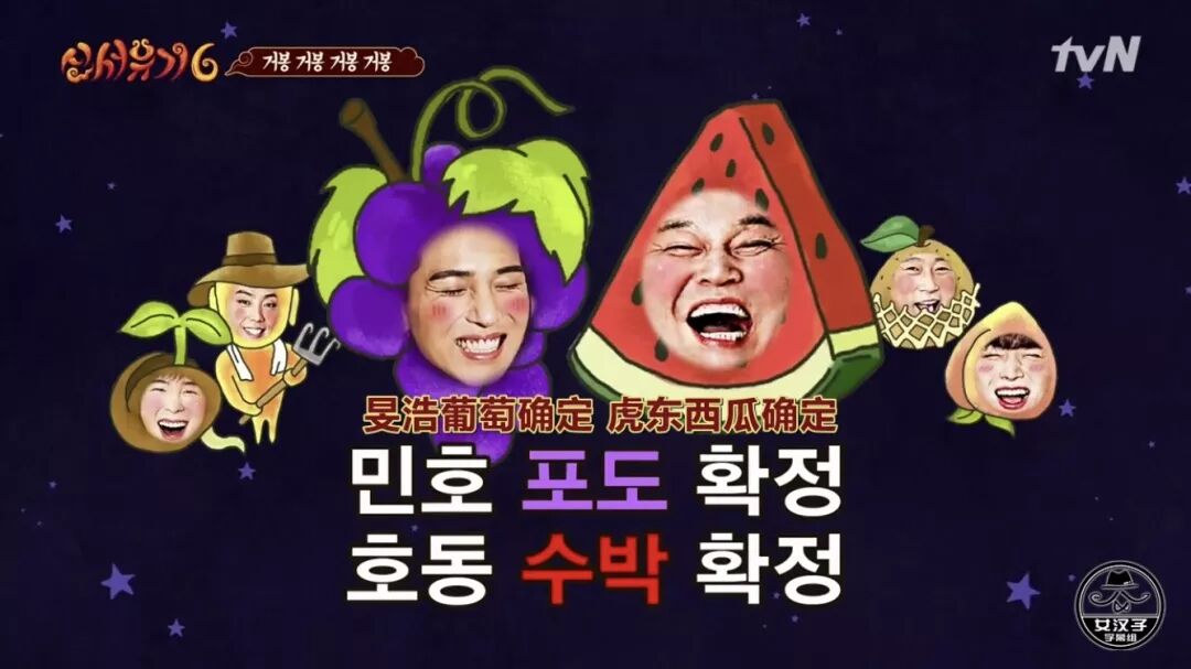 殷志源——农夫、安宰贤——桃子、李秀根——梨、表志勋——新苗、宋旻浩——葡萄、姜虎东——西瓜。
