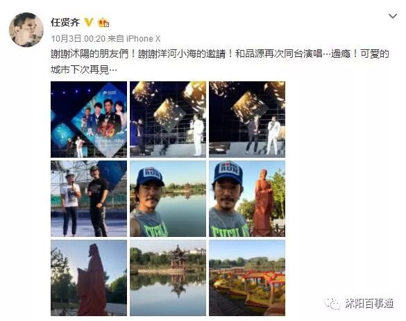 “谢谢沭阳的朋友们!谢谢洋河小海的邀请!和品源再次同台演唱...过瘾!可爱的城市下次再见!”