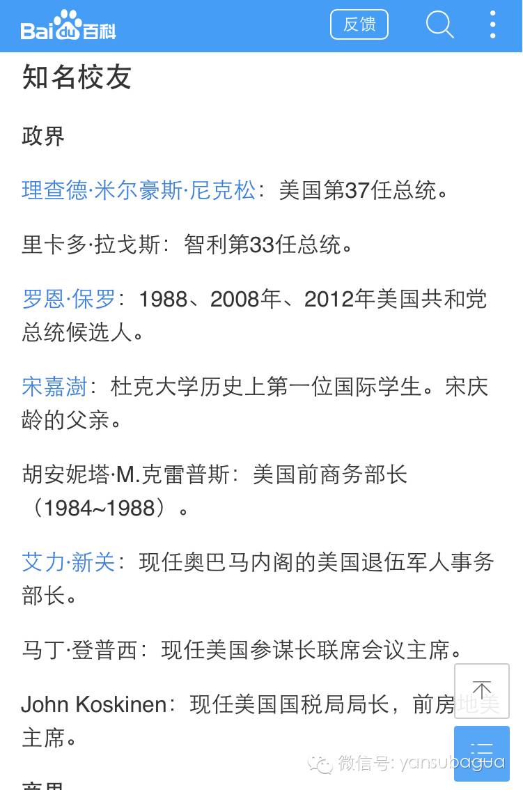 杜克大学很有名,宋氏三姐妹的父亲就是这个学校的,校友还有尼克松总统等。