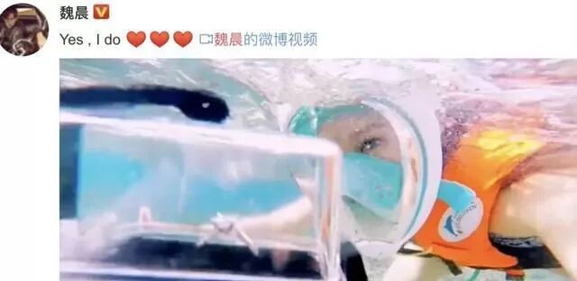 游着游着,女方也在海底出现,接受了魏晨在海底拖出的钻戒,这种求婚方式也是新颖。