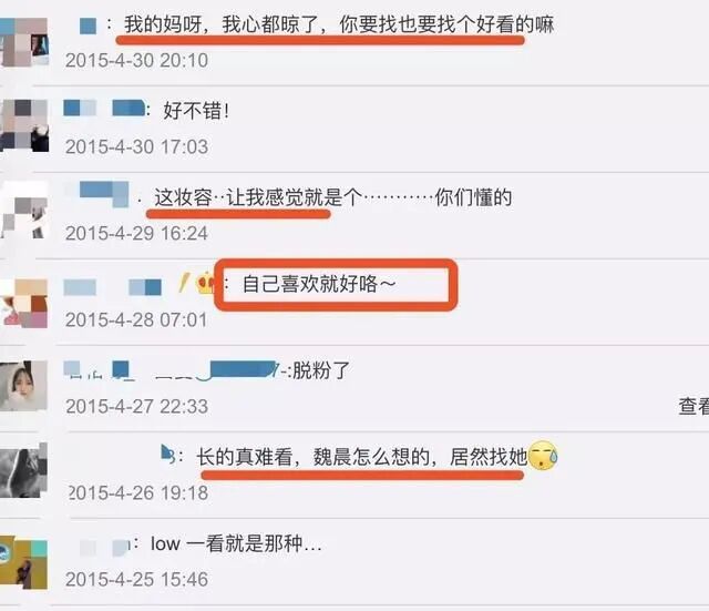 不过,二人早在恋情刚曝光时,魏晨女友曾被不少网友diss长得不好看、没气质,甚至有粉丝要脱粉,并留言表示:“心都凉了,要找也找个好看的嘛。”