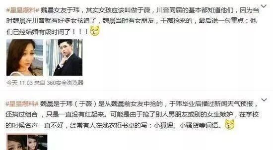 当时有知情人透露,魏晨女友于玮曾是国内首支少女偶像组合Idolgirls(爱朵女孩)中的一员,当时的代号是“清香苹果”。