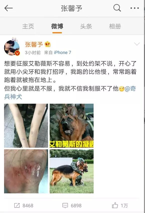 从照片来看,张馨予手掌、胳膊等上都有伤,而且有被狗咬的伤。