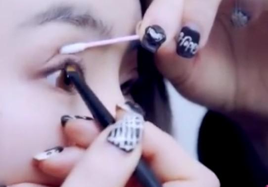 第五步是画眼线,眼线是眼妆的一个亮点部分,也会显得眼睛很有神,而眼线可以说是很多新手比较苦恼的,很多新手都手残,但按照这个技巧多练习,你们会很快学会的,画眼线的时候,用棉签轻轻的顶住眼角,这样画的时候就不会有抬头纹了。