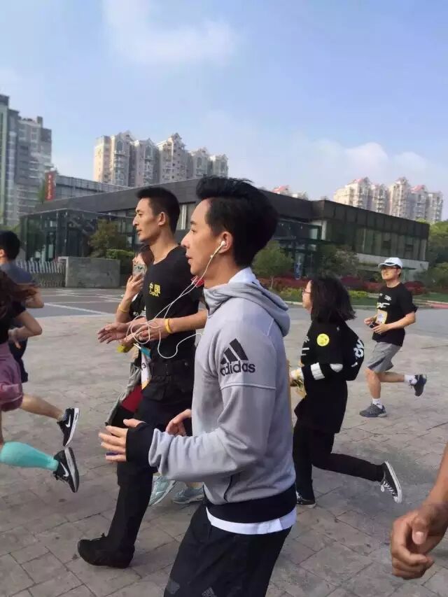 开跑啦!韩庚作为领队冲在队伍的最前面。