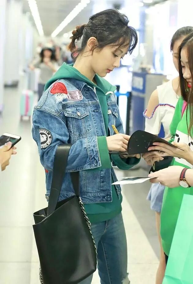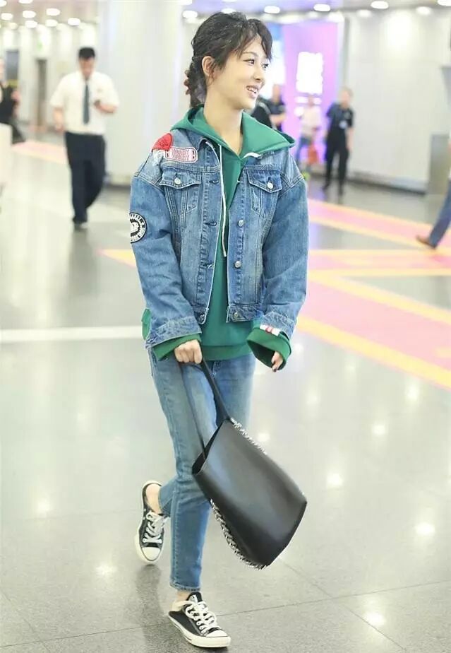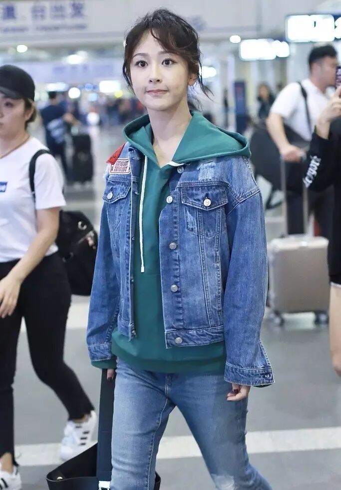 杨紫参加完演唱会在机场现身,一身牛仔衣休闲朴素,亲民的形象实在太真实了!