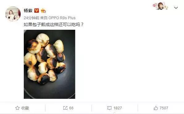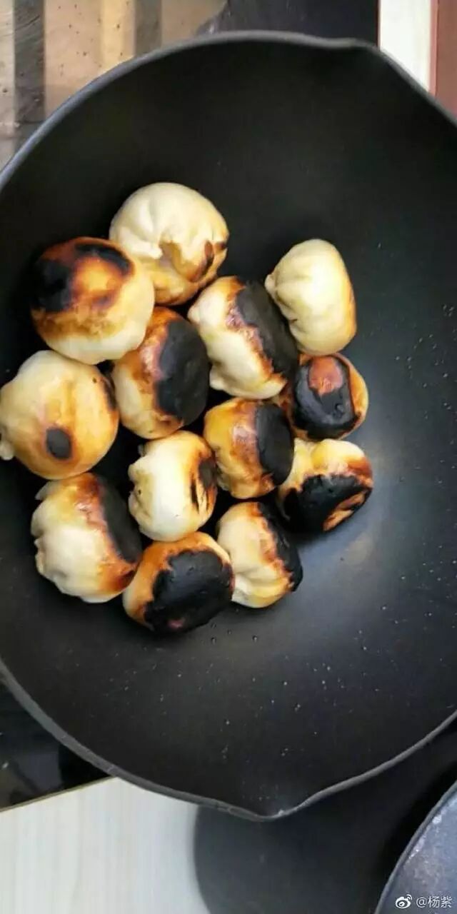 今日的杨紫,大早上的就在微博上晒美食了,可是这“美味”并不能让人流口水,而是一下子食欲全无,她将包子下到锅里去煎了,只是这火候把握得不是很好,给煎糊了,白白胖胖的小包子,一会功夫不见,就全黑了。