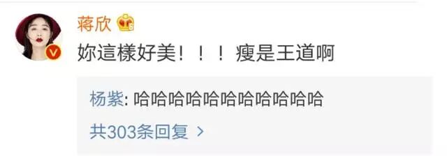 蒋欣在微博下的评论亮了,直言“瘦是王道!”蒋欣,你是吃可爱长大的吗?
