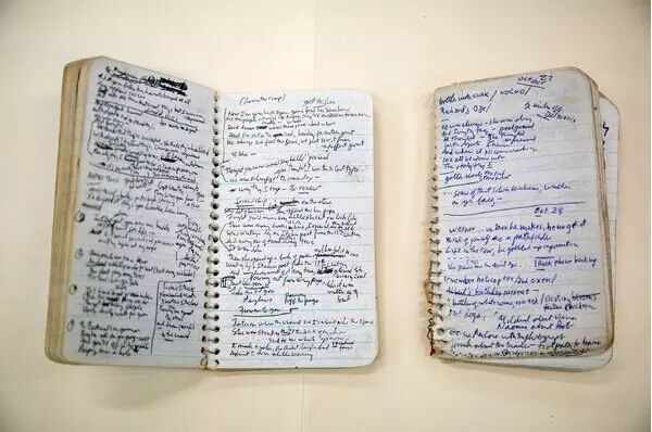 写有迪伦1975年专辑《音轨上的血痕》中歌词的笔记本。