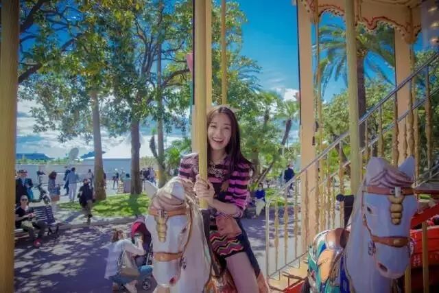 像咱们这种小仙女当然会去游乐园卖个萌,顺便拍个照啦。旋转木马真的是游乐园拍照no.1,坐在上面你开不开心?那你就负责开心地笑就行了。当然了,一个人看起来有些单调,那就像喵总这样,去沾个光吧。