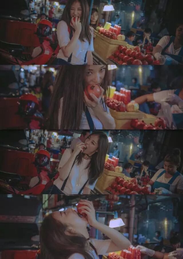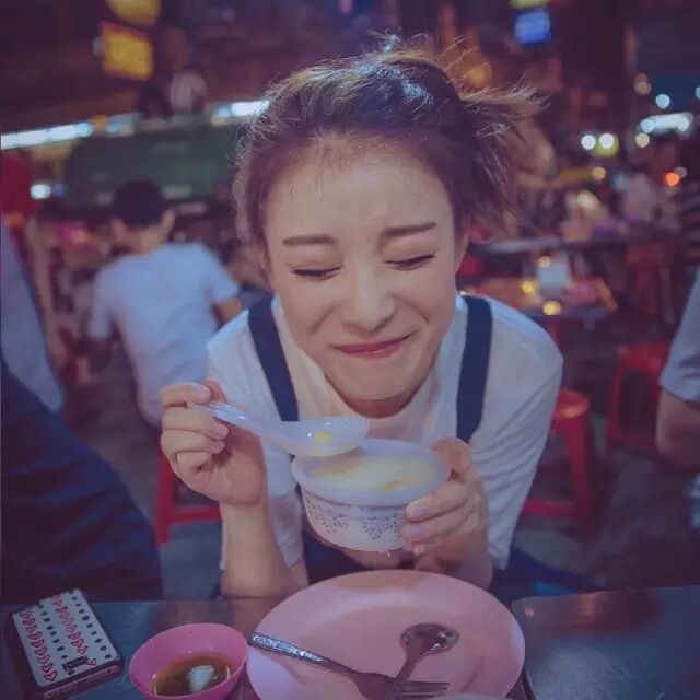 旅游哪有不逛吃逛吃的?背带裤加白T恤,配上搞怪的表情,倪妮看起来就是一个活脱脱的学生妹!而且,看着她吃东西,感觉好幸福,好好吃~~~