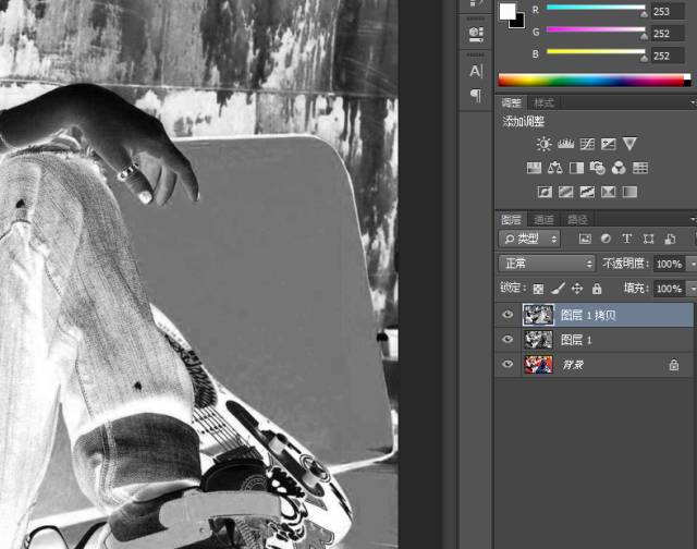 3.按Ctrl+J 复制图层1,得到图层1副本。再按 Ctrl+I对图层1副本层进行反相。