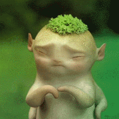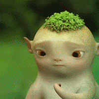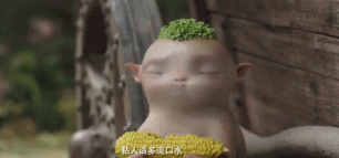妖二代胡巴,头顶小草原,两只小短腿撑着圆滚滚的身子,屁股后头一根小尾巴,QQ弹弹。