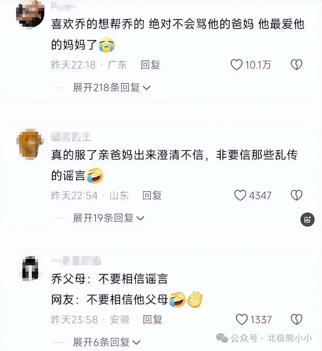 尽管乔任梁的父母再三发表声明,公布儿子确实是死于抑郁症,还逐一回复了网友的质疑,但部分有心之人和造谣者仍然死性不改,为了博人眼球继续散布“乔任梁死因的各种谣言”。
