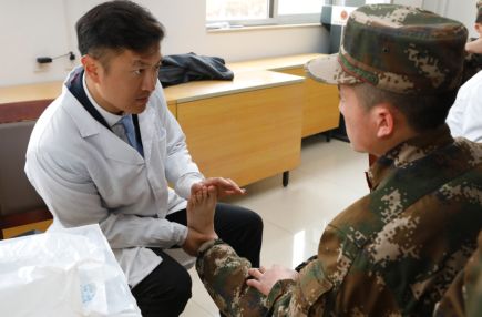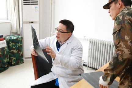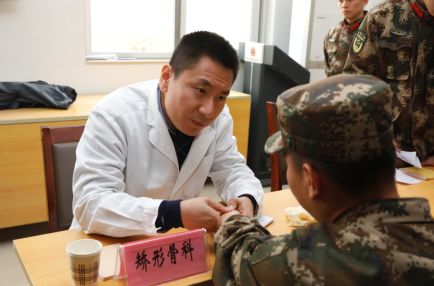 在义诊现场,每个诊台前都排起了长长的队伍,支队官兵根据自身训练需要和身体状况进行咨询,专家们为每一位战士细致查体、耐心问诊,认真解答患病官兵的疑虑。骨科专家们还专门针对部队训练、执勤过程中容易引发的常见伤病进行了健康宣教和指导;对病情较轻的官兵,现场检查后提供了治疗意见和康复训练方案,对较重的则给出系统检查和治疗的建议。义诊活动深受官兵们的欢迎,服务人次达到200余人,积医大夫们娴熟的医术和扎实高效的作风受到了官兵的一致好评。