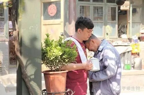 在一场戏中,父子逛菜市场,老头突然小便失禁,为了维护父亲的尊严,刘海皮脱下衣服给老头系在腰间,“系的那一瞬间我特别特别难受,突然拉着雪健老师就哭了,还真是把他吓了一跳。