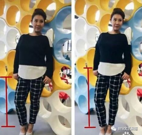唐嫣的官方身高是172cm,其实就算不用修图师傅,她的腿也是一双漫画腿。结果修图师傅用力过猛,唐嫣的腿也长到了不可思议的级别。左边是原图,右边是工作室的图,大家感受一下: