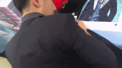 现场的工作人员,也会很温柔地递给他一份礼物。