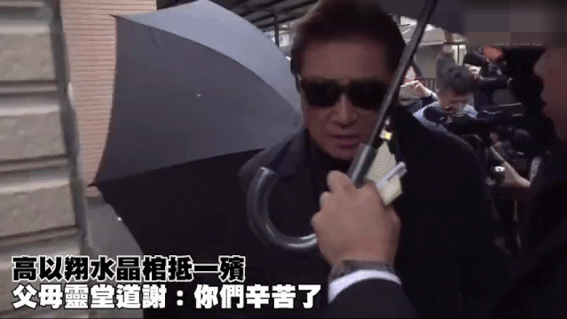 高以翔女友Bella和家人泣不成声,高以翔的遗照选用笑得非常开心的白色西装照。