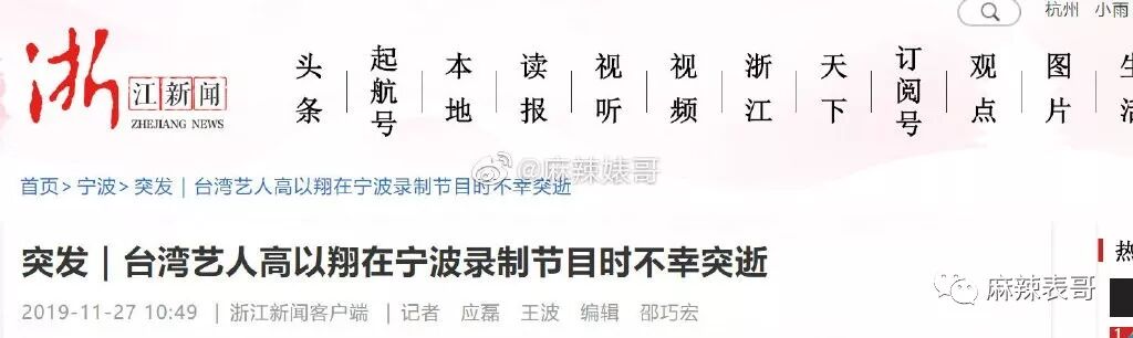 27日10时49分,“浙江新闻”率先确定了高以翔去世的信息。