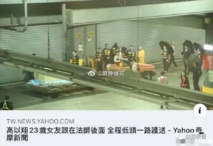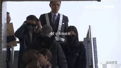 出机场时,高以翔女友全程跟着法师,一路低头不语。