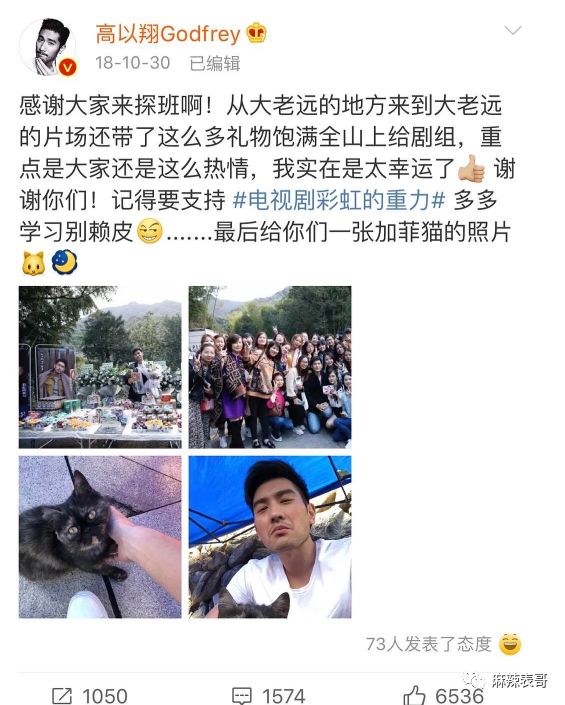 说高以翔有一只小猫因为没法带回台湾,就留在了他家里,给他太太照料。不知道是不是这只猫。