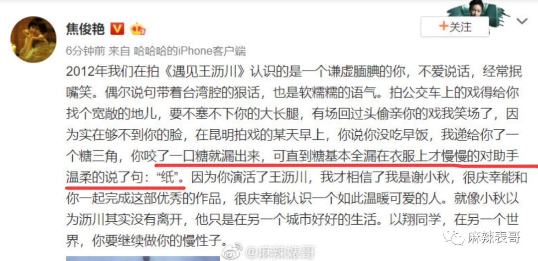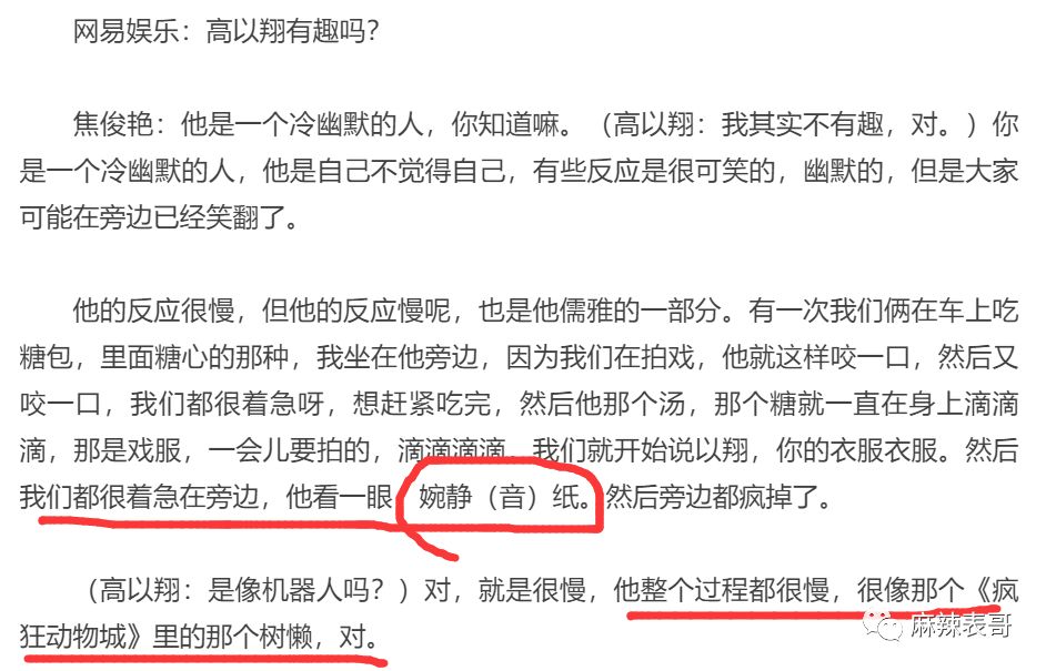 焦俊艳有一段描写高以翔和他助理的文章,是这样说的。