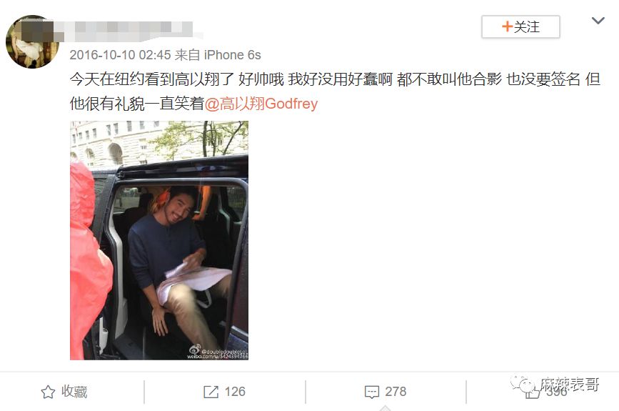 当时有粉丝遇到他在拍戏,不敢前去要合影,高以翔一直在车里傻笑。