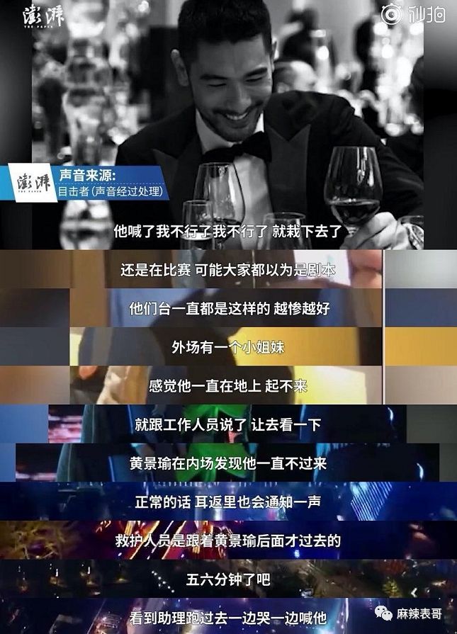 随后,黄景瑜、陈伟霆等人呼救,急救人员进行了10分钟左右的心肺复苏,2点左右送医。