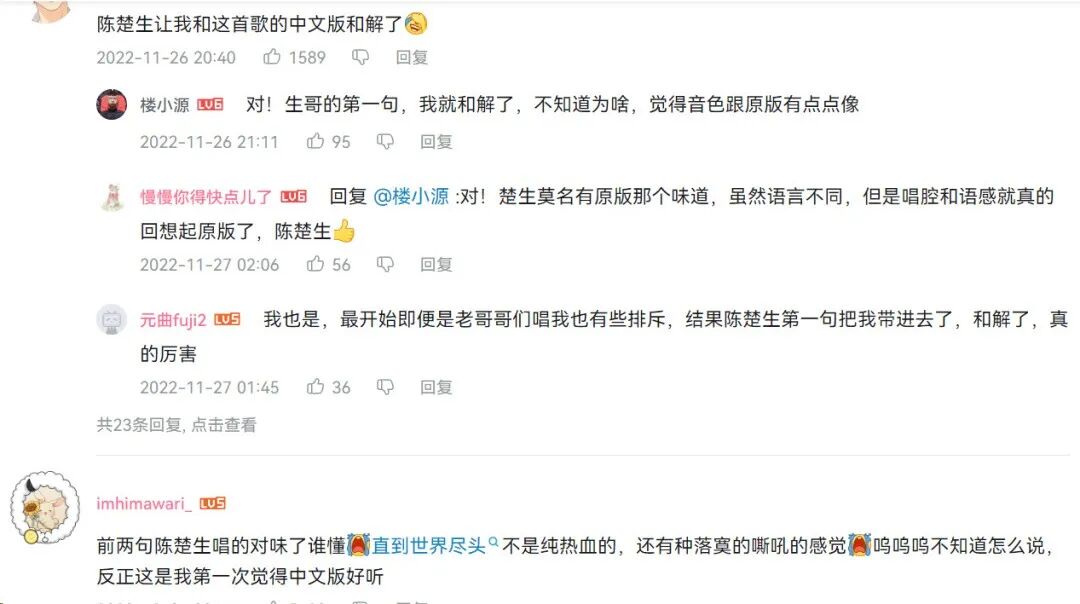 初舞台上到的陈楚生一开口,他的歌声让所有人都没忍住,直接泪目。