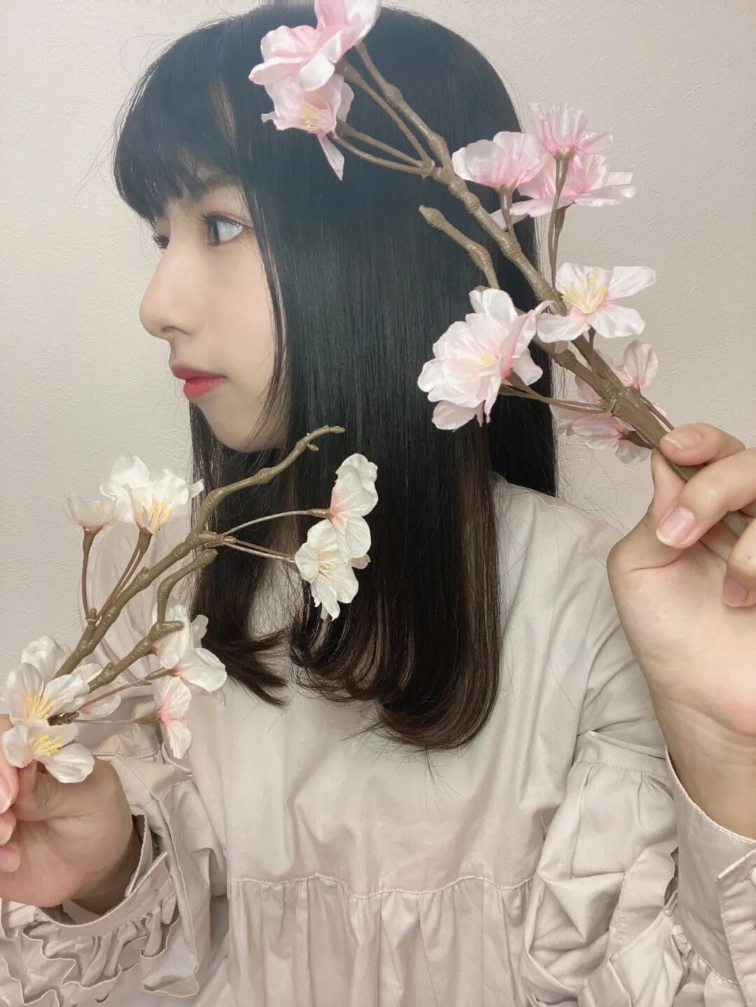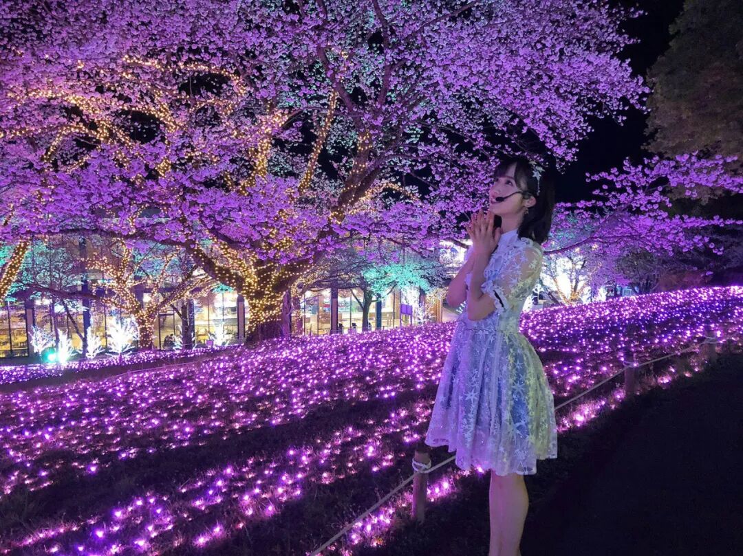 樱花树下的氧气少女!为了拍照,特意买的人造花。(河口夏音)