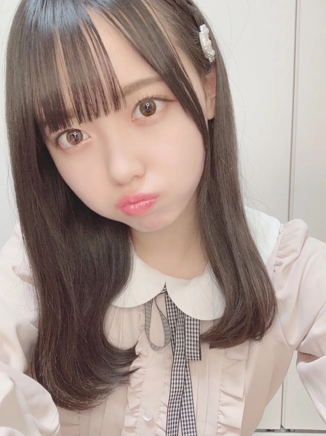 最近流行的嘟嘟嘴,可爱值加两点。(松本ももな)