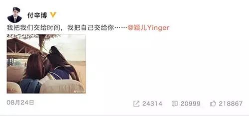 不过这两人办事的进展那的确是有够拼的。如果非要用一个字来总结的话,那就是“快”。虽然二人早就有猫腻,但是直到去年8月24日,付辛博与颖儿才正式公开恋情,而到了12月他们干脆直接公布怀孕消息。