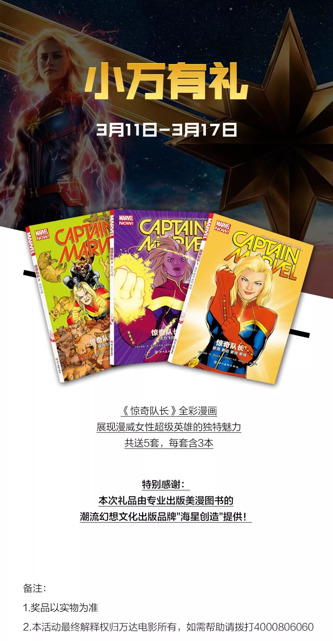 在本篇文章的留言区畅所欲言,说说你心中的漫威英雄其他人选,小万将选取点赞数最多的5位朋友,每人送一套《惊奇队长》漫画套装。