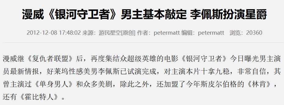 他曾是星爵的最热门人选,回看一下当年的新闻,感觉恍如隔世。
