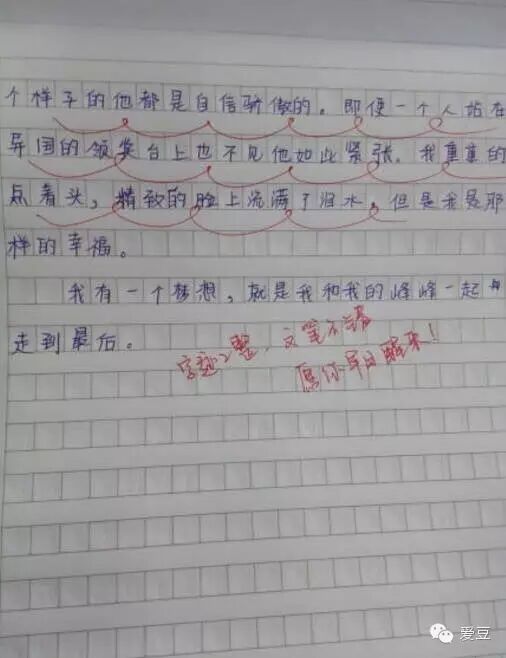 更有趣的是,老师看完此文后用红笔批注称,“愿你早日醒来”,也是醉了。不少网友纷纷笑言“老师给点梦想吧”。