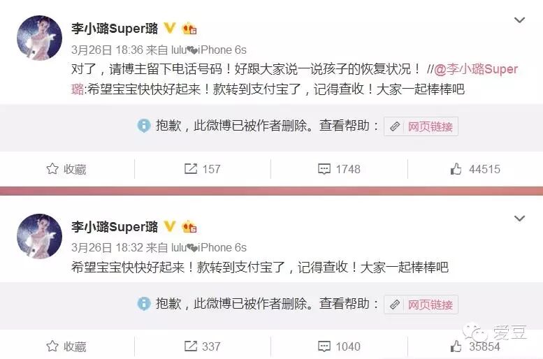 身为人母的李小璐在面对孩子妈妈的求助,自然毫不犹豫地转发该微博并迅速将爱心善款打到了对方账号,希望宝宝早日康复。之后,李小璐又转发向该博主求问电话号码,以方便大家了解患病儿童的恢复情况,但对方再无回应,还删除了求助微博。至此李小璐才恍然大认为自己遭遇了骗子,爱心捐款可能落入了骗子之手。