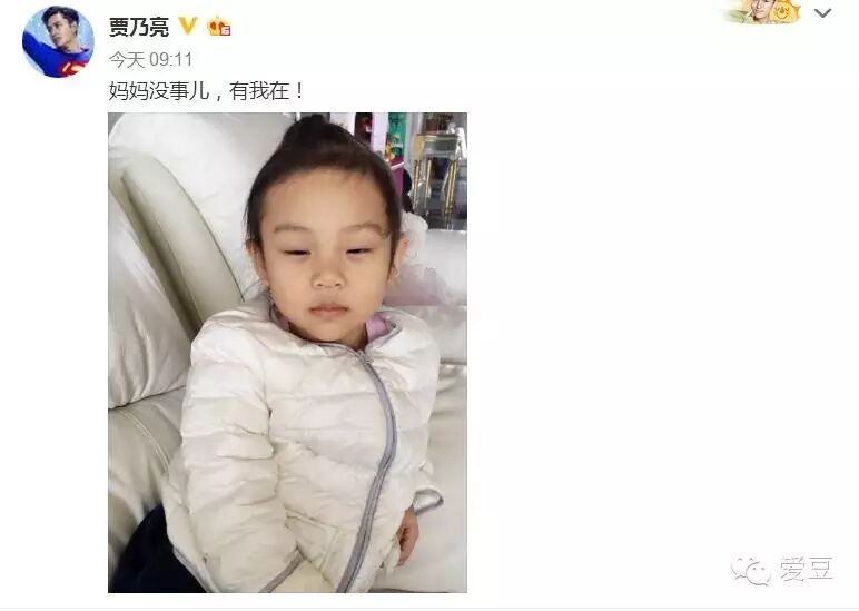 今天早上贾乃亮又在微博上晒出一张甜馨半眯眼的可爱照,并以甜馨的口吻写道:“妈妈没事儿,有我在!”