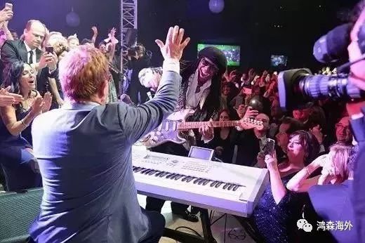 Elton John的派对不仅能接触到电影明星,还有许多著名歌手。现场的音乐表演也是一大亮点!