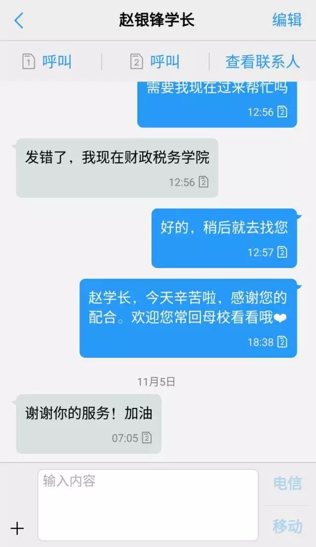 对接联络志愿者的短信截图